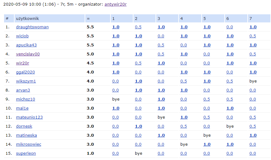 Zapraszam na następne o nazwach „wir20r” w piątek, 15 maja o godzinie 16:00 i „antywir20r” w sobotę, 16 maja o godzinie 10:00.