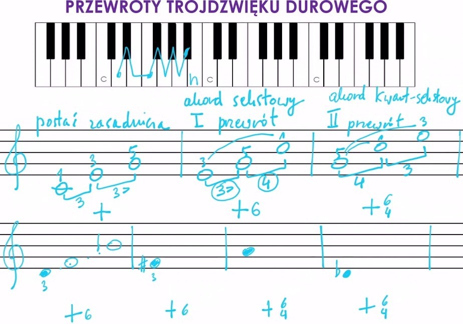2. W łączeniu akordów bardzo pomocną będzie umiejętność ich stosowania w różnych przewrotach.