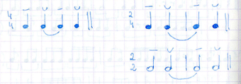 3. Przedłużanie wartości rytmicznych przy pomocy łuku.